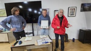 Una vez firmado el convenio hubo un intercambio de recuerdos, el nuestro, es un bonito bajorrelieve realizado por Antonio Riaño, y el suyo un cuadro en el que se recoge la frase “La montaña enseña que toda cima se alcanza mejor en compañía”, frase que refleja perfectamente el espíritu de este hermanamiento.