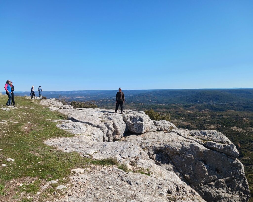 El mirador que se abre ante nuestros ojos es bellísimo. Al noroeste, el Ocejón, nos mira desafiante; el Tajo va formando meandros entre los barrancos hasta llegar más allá a Entrepeñas, toda la Alcarria está a nuestros pies, tan solo afeadas por la Central Nuclear de Trillo.