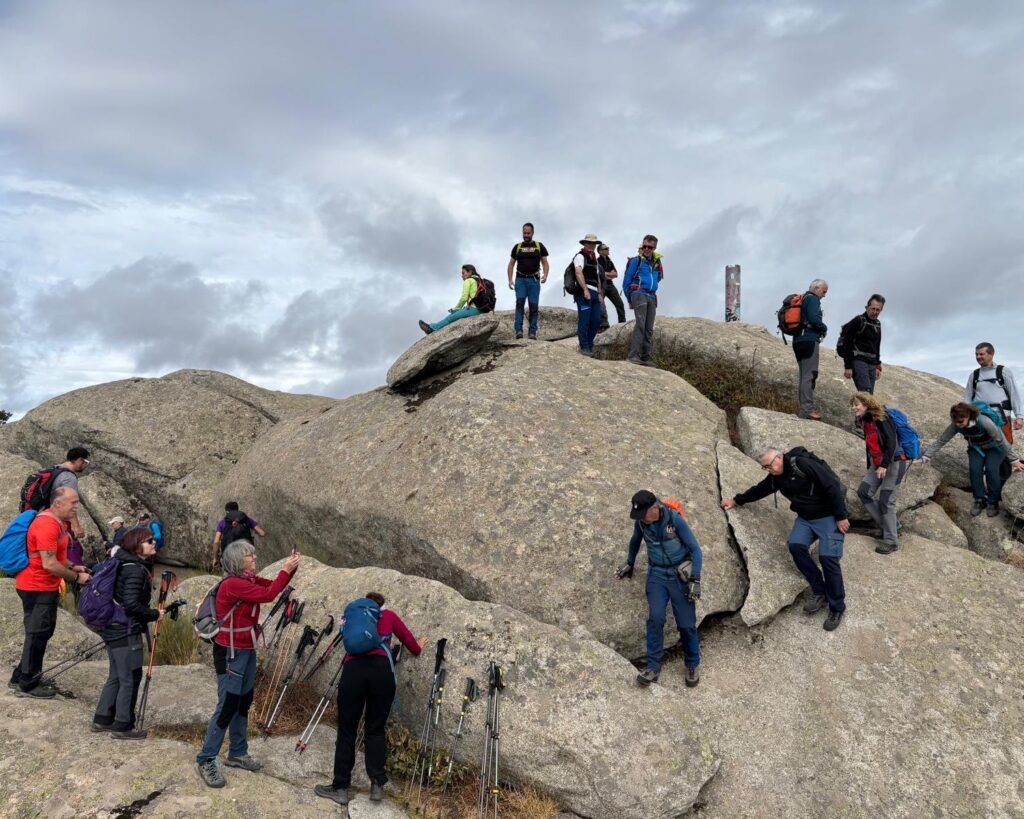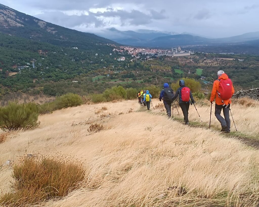 En la Casa del Sordo nos hacemos una foto de grupo con excelentes vistas del monasterio y continuamos nuestra ascensión por el GR 10.