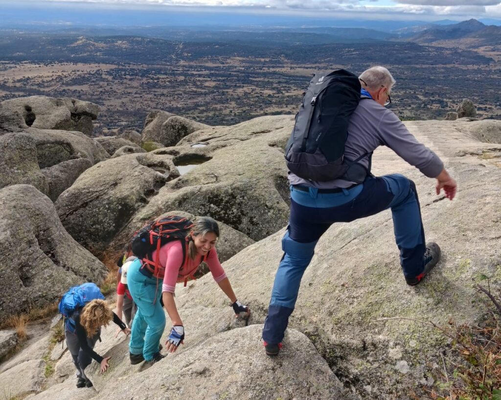 En el collado de Entrecabezas nos reagrupamos y toma el mando Juan para no despistarnos por la zona de rocas. La temperatura es deliciosa y casi sin darnos cuenta nos situamos al pie de la Machota Baja.