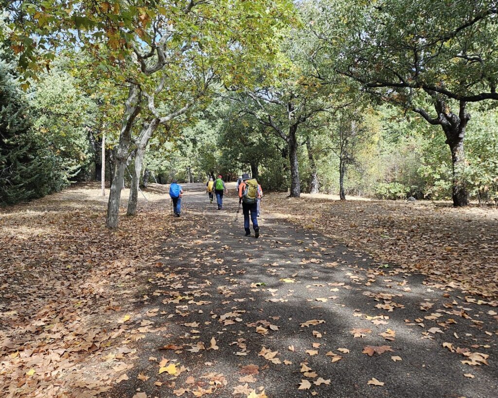Iniciamos nuestra excursión ascendiendo por el bosque de la Herrería que nos obsequia con cálidos colores otoñales.